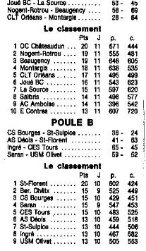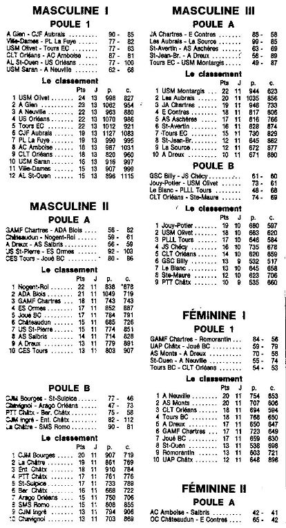 Saison 1986-1987 : Résultats et Classements après la Journée du 25 Janvier 1987 des Championnats Régionaux