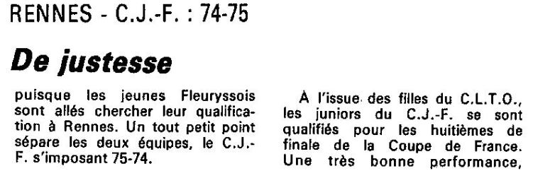 Saison 1986-1987 : En Coupe de France Juniors Féminines, le CJF bat Rennes