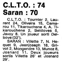 Saison 1986-1987 : Lors de la Journée du 1er Février 1987, en Championnat de Régionale Masculine 1, le CLTO bat Saran