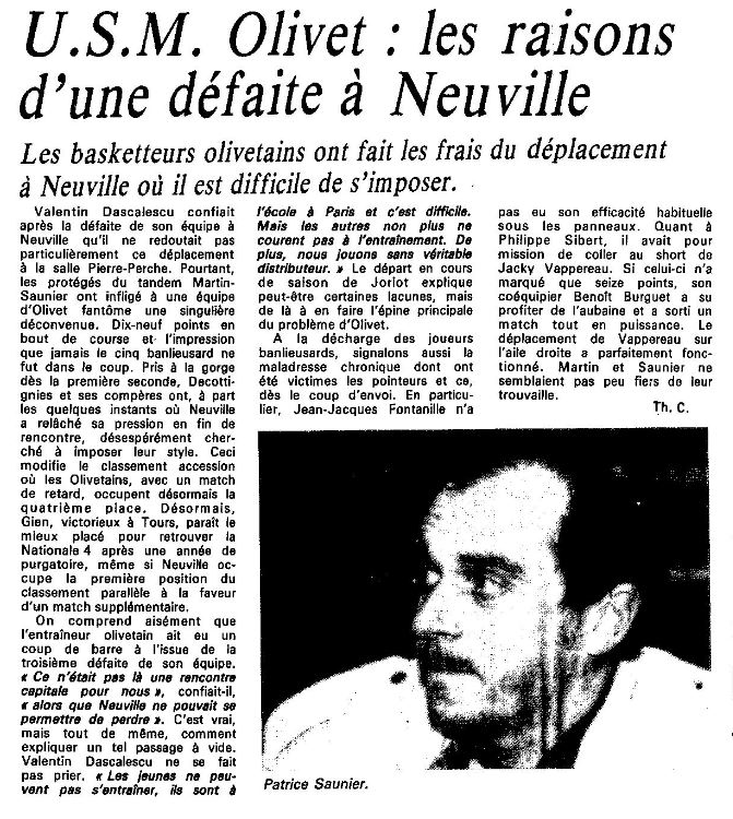 Saison 1986-1987 : Questions après la défaite d’Olivet à Neuville !