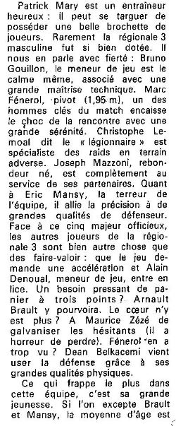 Saison 1986-1987 : L’équipe 1ère Masculine de Montargis vise la Montée en Régionale 2
