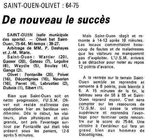 Saison 1986-1987 : Lors de la Journée du 15 Février 1987, en Championnat de Régionale Masculine 1, Olivet bat Saint-Ouen