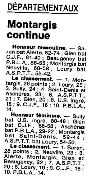 Saison 1986-1987 : Résultats et Classements après la Journée du 15 Février 1987 des Championnats Départementaux du Loiret