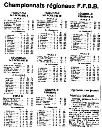 Saison 1986-1987 : Résultats et Classements après la Journée du 15 Février 1987 des Championnats Régionaux