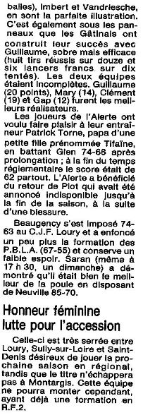 Saison 1986-1987 : Commentaires sur le Championnat Départemental du Loiret après la Journée du 22 Février 1987