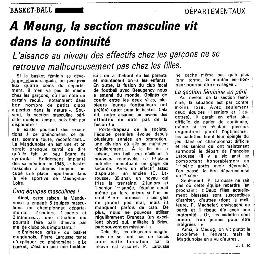 Saison 1986-1987 : La Magdunoise Basket les Filles en péril !