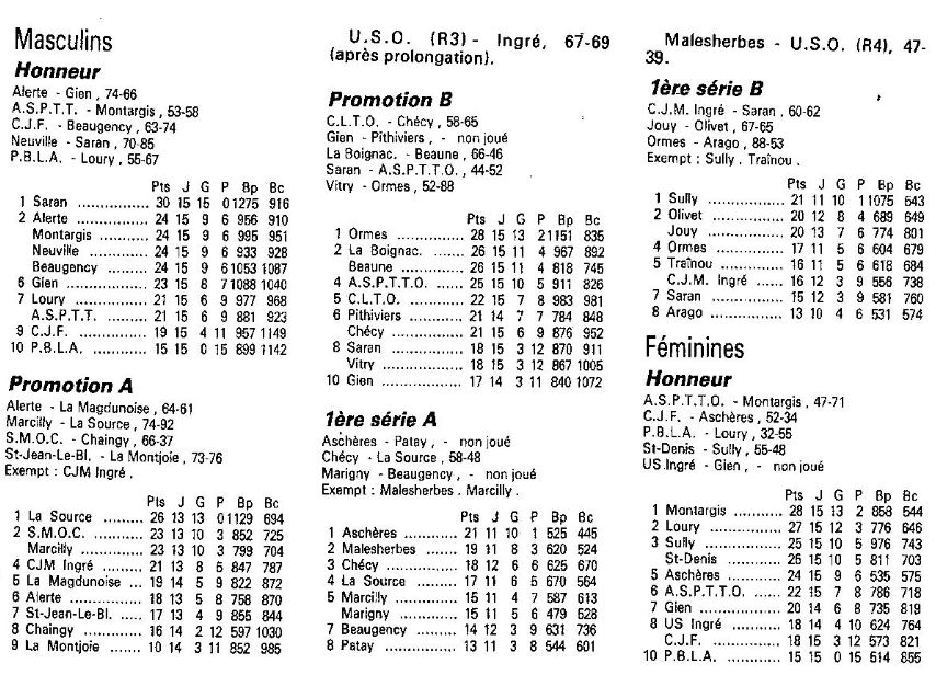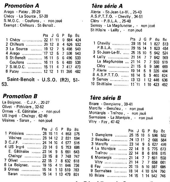 Saison 1986-1987 : Résultats et Classements après la Journée du 22 Février 1987 des Championnats Départementaux du Loiret