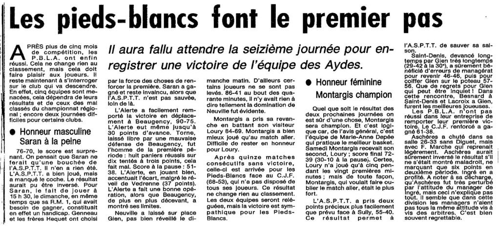 Saison 1986-1987 : Lors de la Journée du 15 Mars 1987, en Championnat de Régionale Masculine 1, Saran bat Saint-Ouen »
