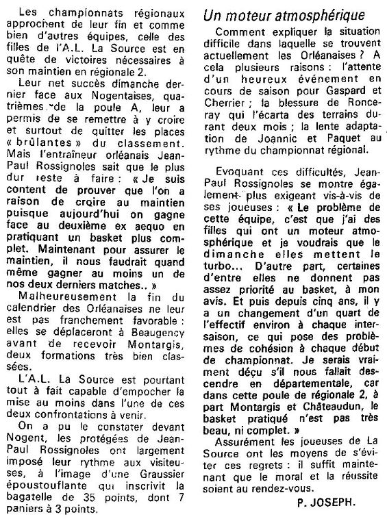 Saison 1986-1987 : Les Filles de l’Amicale Laïque de La Source en Lutte pour le Maintien…