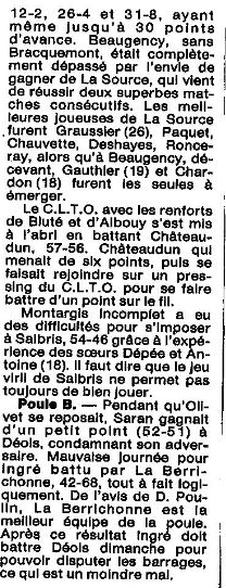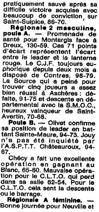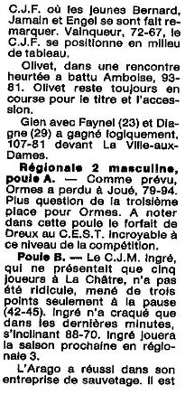 Saison 1986-1987 : Commentaires après la Journée du 22 Mars 1987 des Championnats Régionaux