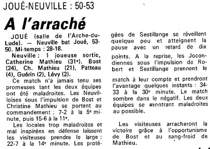 Saison 1986-1987 : Lors de la Journée du 22 Mars 1987, en Championnat de Régionale Féminine 1, Neuville bat Joué