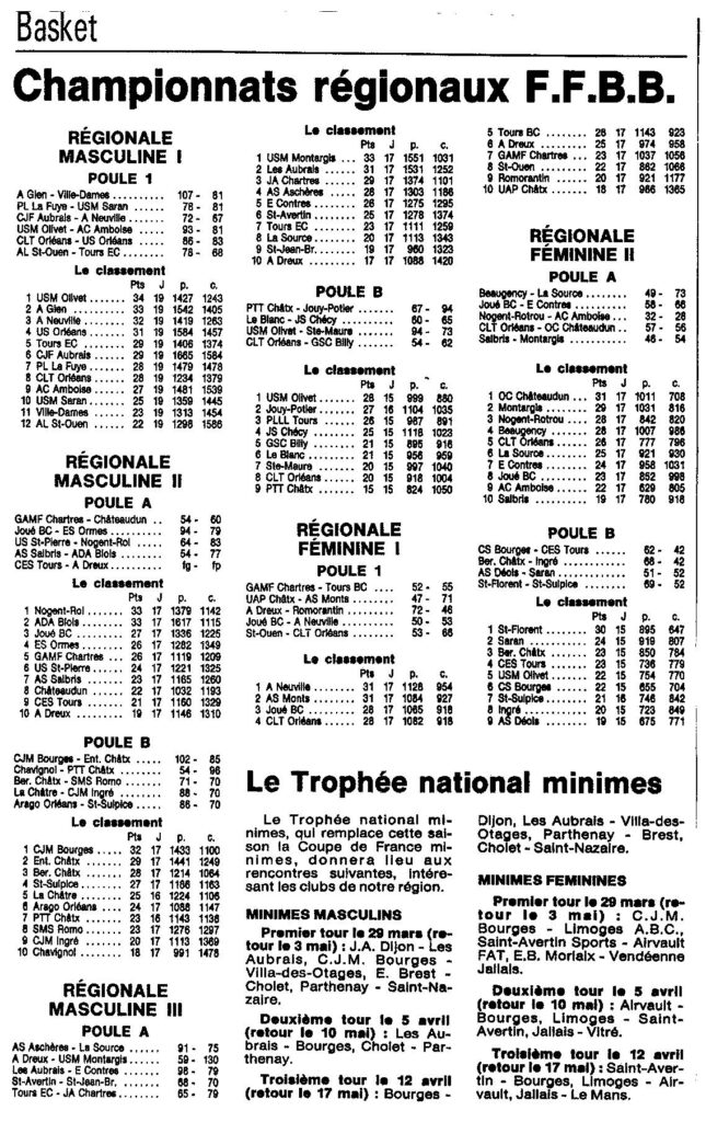 Saison : 1986-1987 : Commentaires sur les Championnats Départementaux du Loiret après la Journée du 22 Mars 1987 »
