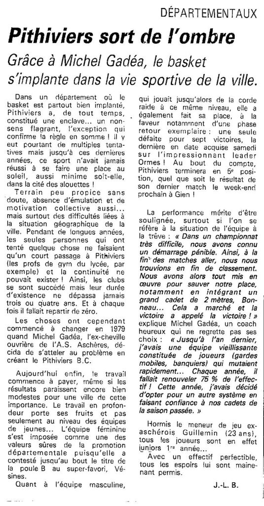 Saison 1986-1987 : A Pithiviers, il n’y a pas que la Pâtisserie…