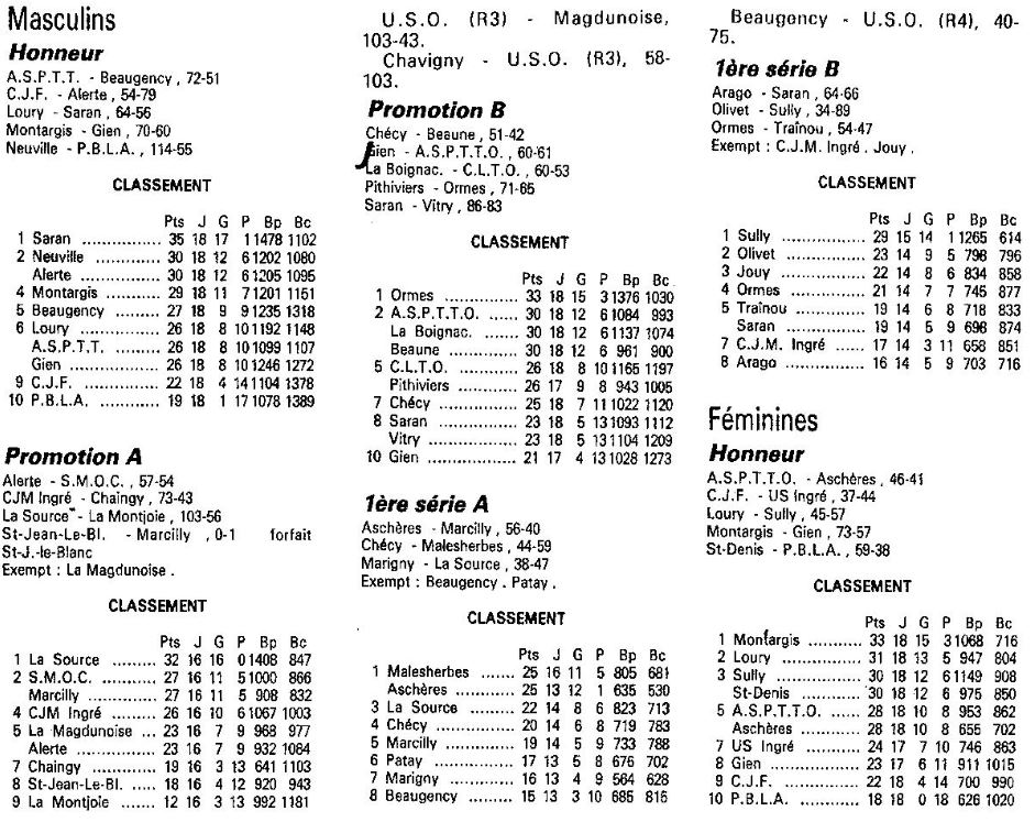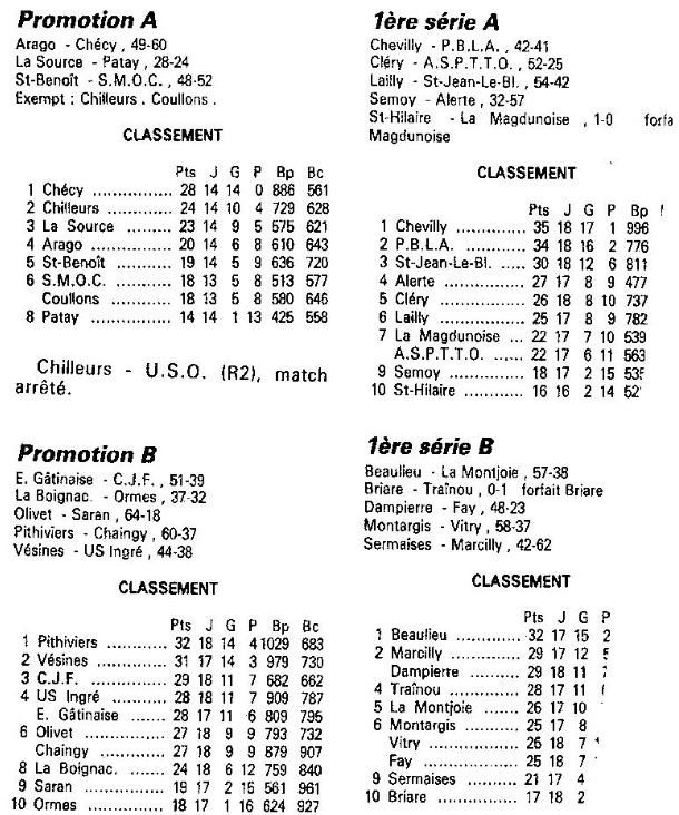 Saison 1986-1987 : Résultats et Classements après la Journée du 29 Mars 1987 des Championnats Départementaux du Loiret