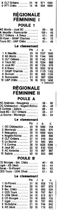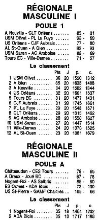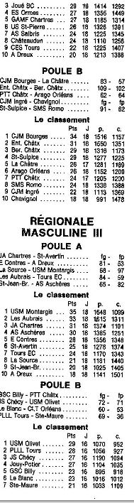 Saison 1986-1987 : Résultats et Classements après la Journée du 29 Mars 1987 des Championnats Régionaux