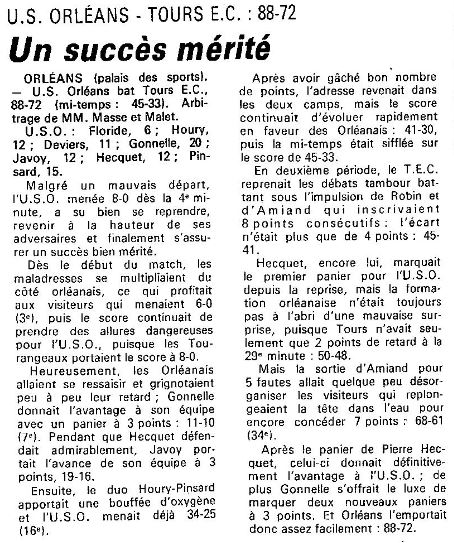 Saison 1986-1987 : Lors de la Journée du 5 Avril 1987 du Championnat de Régionale Masculine 1, l’US Orléans bat le Tours EC