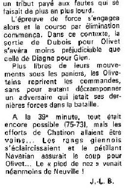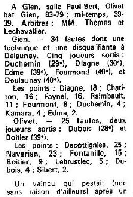Saison 1986-1987 : Lors de la Journée du 5 Avril 1987, en Championnat de Régionale Masculine 1, Olivet bat Gien