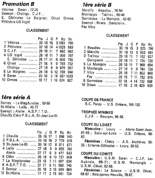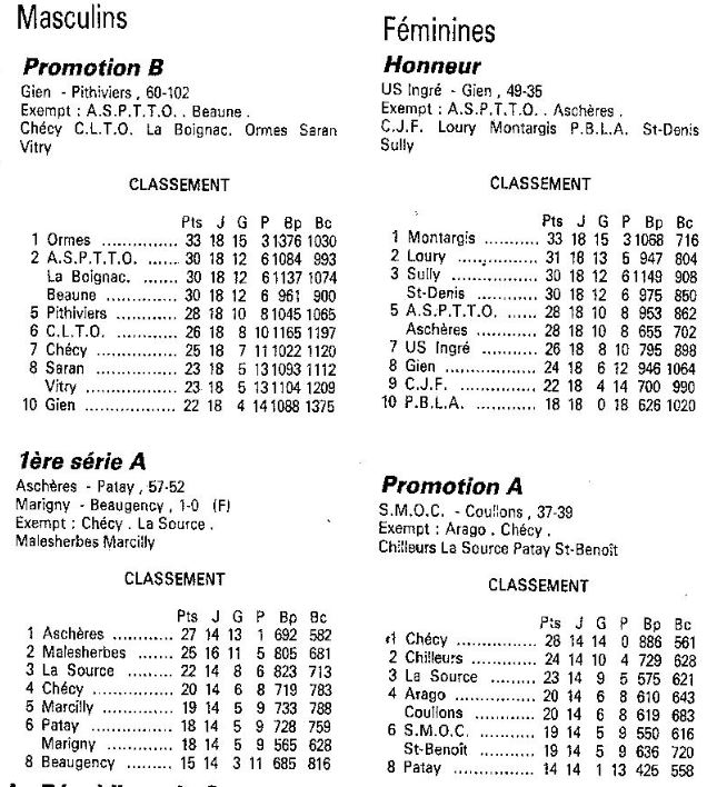Saison 1986-1987 : Résultats et Classements après la Journée du 5 Avril 1987 des Championnats Départementaux du Loiret