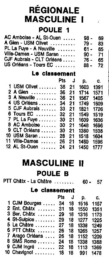 Saison 1986-1987 : Résultats et Classements après la Journée du 5 Avril 1987 des Championnats Régionaux