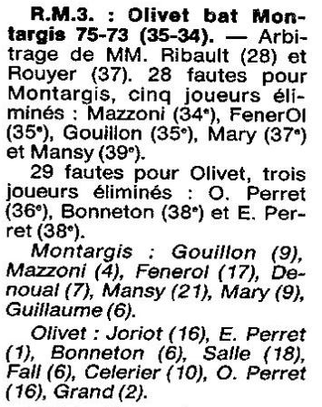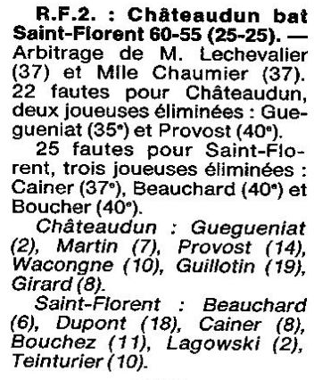 Saison 1986-1987 : Résultats des Finales Régionales à Amboise le 12 Avril 1987