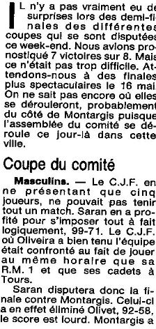 Saison 1986-1987 : Résultats des demi-finales des Coupes Départementales du Loiret