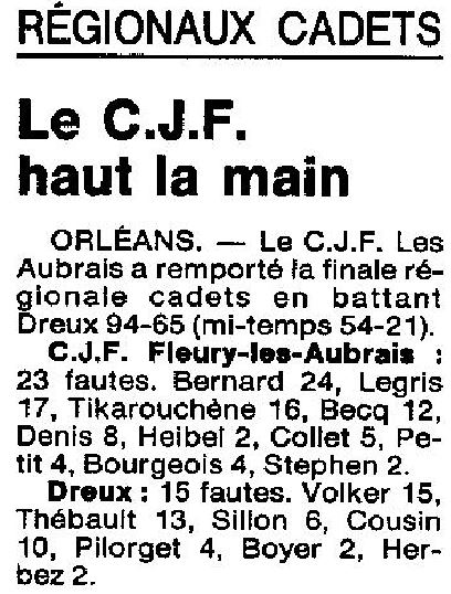 Saison 1986-1987 : Finales Régionales à Amboise »