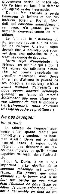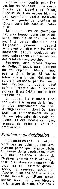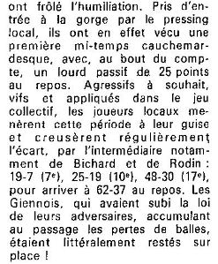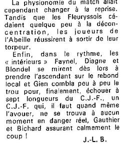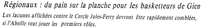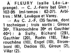 Saison 1987-1988 : Lors de la Journée du 27 Septembre 1987, en Championnat de Régionale Masculine 1, le CJF bat l’Abeille de Gien