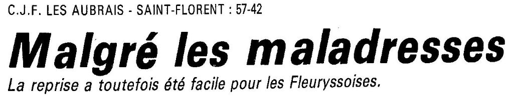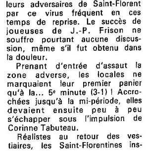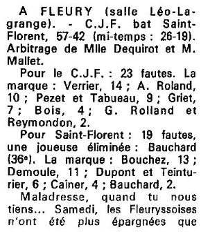 Saison 1987-1988 : Lors de la Journée du 4 Octobre 1987, en Championnat de Régionale Féminine 1, le CJF bat Saint Florent