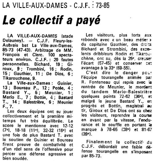 Saison 1987-1988 : Lors de la Journée du 4 Octobre 1987, en Championnat de Régionale Masculine 1, le CJF bat La Ville aux Dames