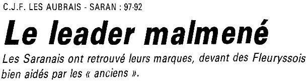 Saison 1987-1988 : Lors de la Journée du 11 Octobre 1987, en Championnat de Régionale Masculine 1, le CJF Les Aubrais bat Saran
