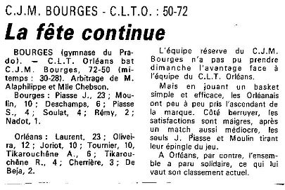 Saison 1987-1988 : Lors de la Journée du 11 Octobre 1987, en Championnat de Régionale Masculine 1, le CLTO bat le CJM Bourges