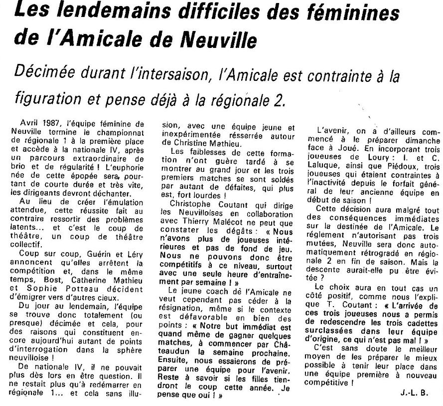 Saison 1987-1988 : « Opération survie » pour les Féminines de Neuville
