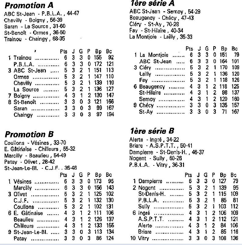 Saison 1987-1988 : Résultats et Classements après la Journée du 18 Octobre 1987 des Championnats Départementaux du Loiret