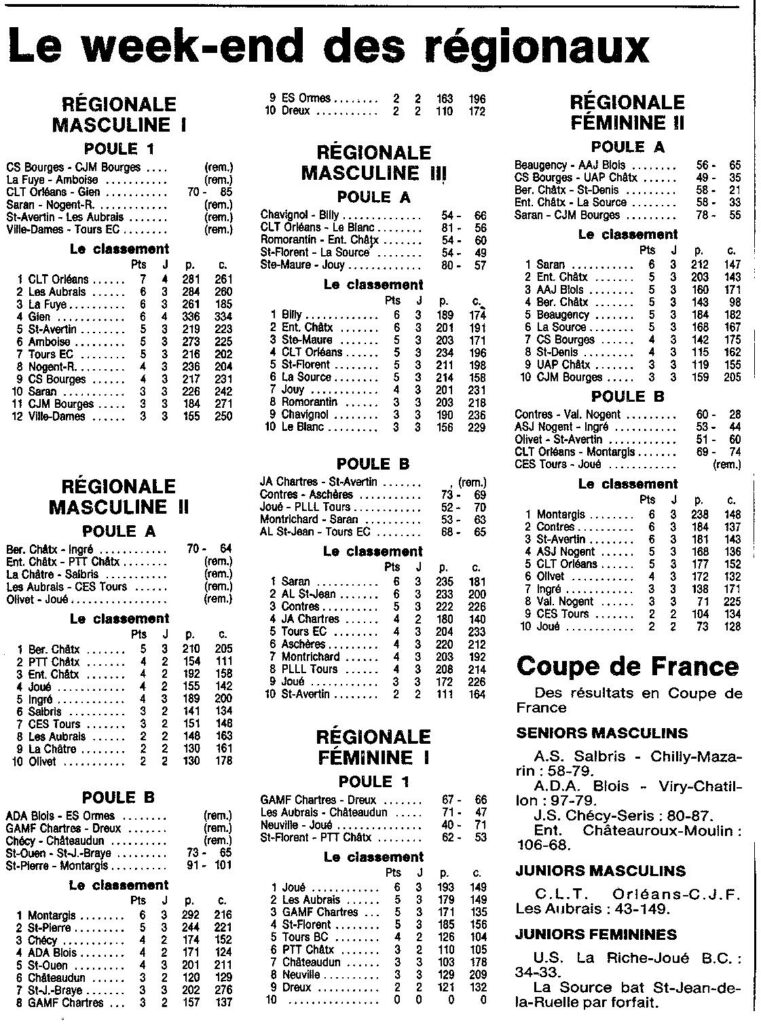 Saison 1987-1988 : Résultats et Classements après la Journée du 18 Octobre 1987 des Championnats Départementaux du Loiret »