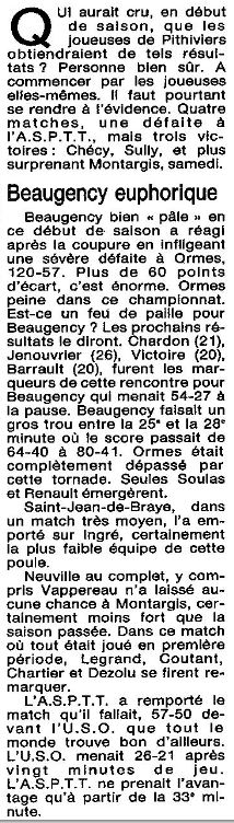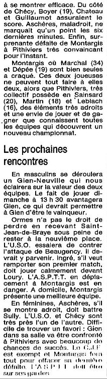 Saison 1987-1988 : Commentaires après la Journée du 15 Novembre 1987 des Championnats Départementaux du Loiret