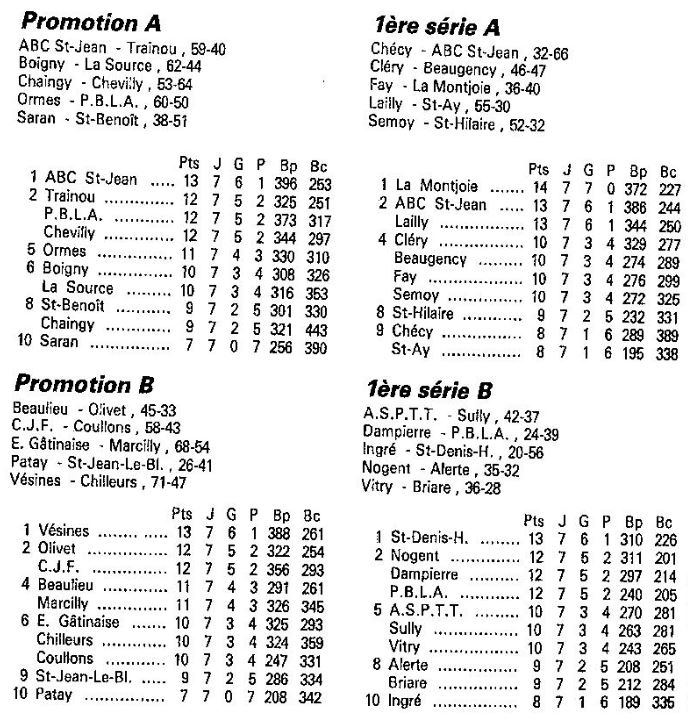 Saison 1987-1988 : Résultats et Classements après la Journée du 29 Novembre 1987 des Championnats Départementaux du Loiret