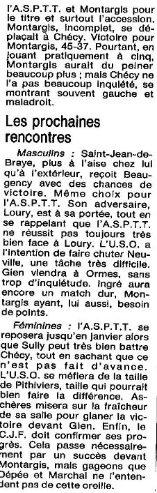 Saison 1987-1988 : Commentaires après la Journée du 6 Décembre 1987 des Championnats Départementaux du Loiret