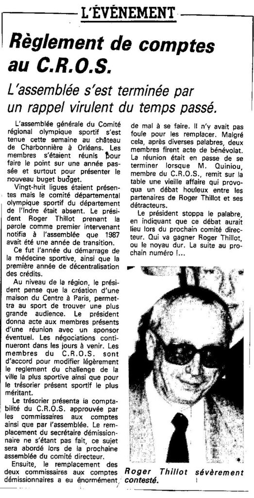 Saison 1987-1988 : Compte Rendu de l’Assemblée Générale du CROS