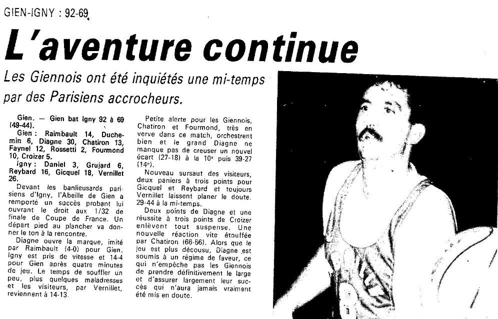 Saison 1987-1988 : En 1/64ème de Finale de la Coupe de France, Gien bat Igny