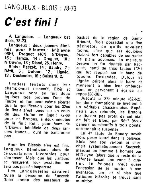 Saison 1987-1988 : En 1/64ème de Finale de la Coupe de France, Langueux bat Blois