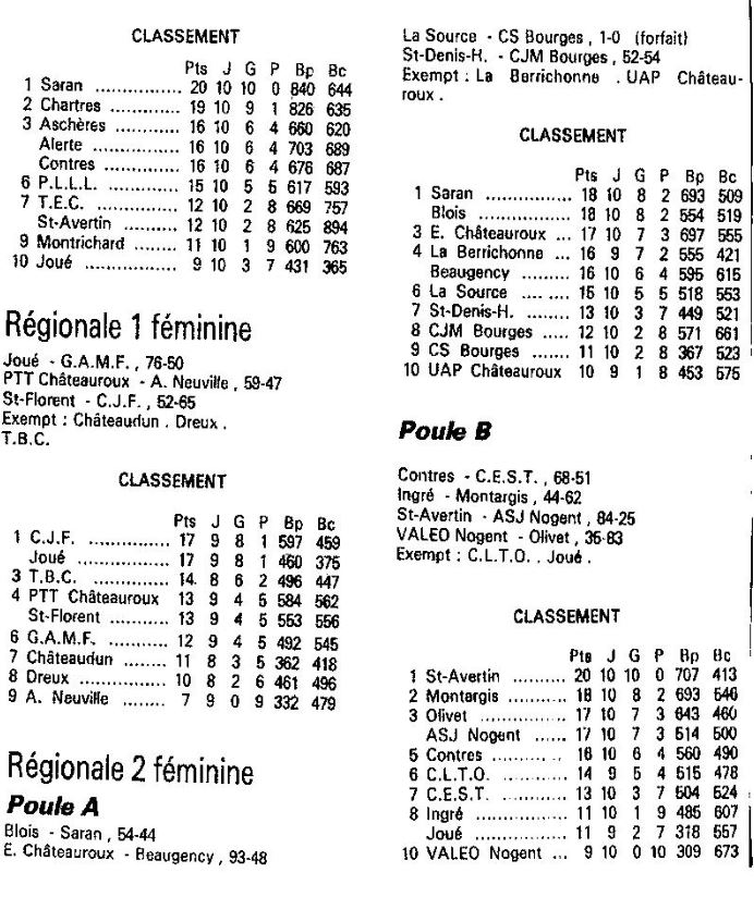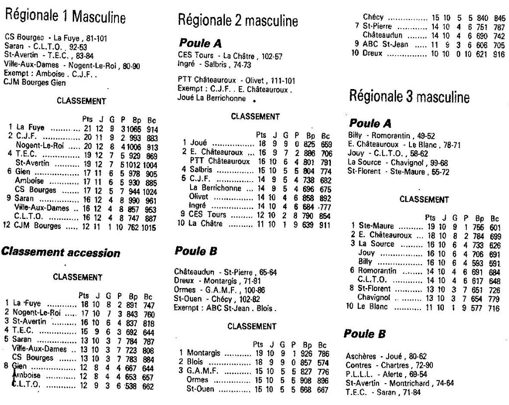 Saison 1987-1988 : Résultats et Classements après la Journée du 10 Janvier 1988 des Championnats Régionaux