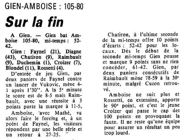 Saison 1987-1988 : Lors de la Journée du 24 Janvier 1988 en Championnat de Régionale Masculine 1, Gien bat Amboise