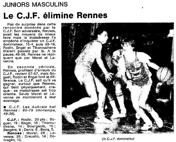 Saison 1987-1988 : En 1/16ème de Finale de la Coupe de France Juniors Masculins, le CJF bat Rennes