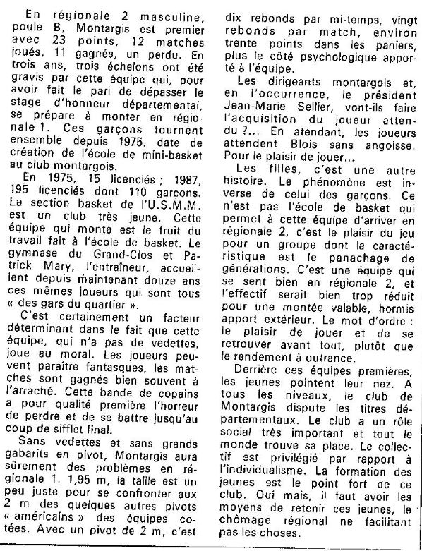 Saison 1987-1988 : Le Basket à l’USM Montargis, pour le Plaisir…