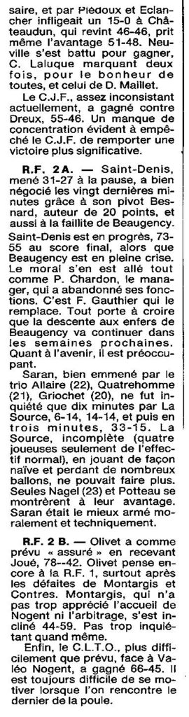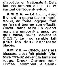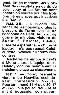 Saison 1987-1988 : Commentaires après la Journée du 7 Février 1988 des Championnats Régionaux