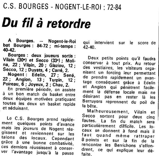 Saison 1987-1988 : Lors de la Journée du 7 Février 1988 en Championnat de Régionale Masculine 1, Nogent le Roi bat le CS Bourges