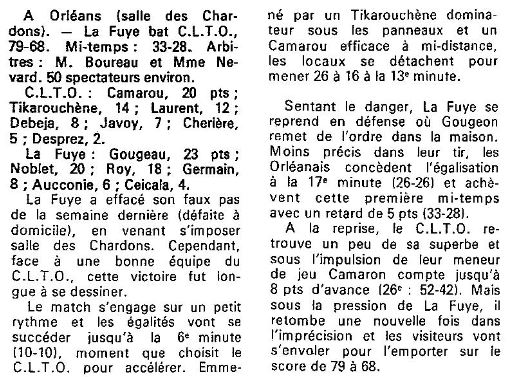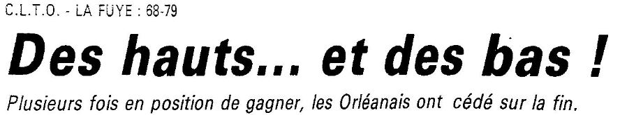 Saison 1987-1988 : Lors de la Journée du 14 Février 1988 en Championnat de Régionale Masculine 1, La Fuye bat le CLTO