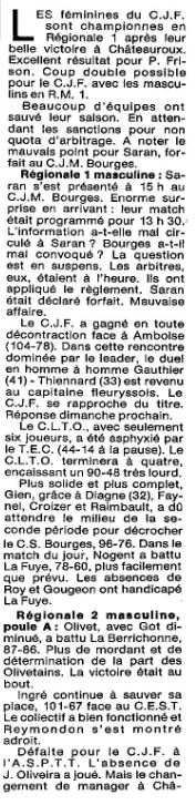 Saison 1987-1988 : Commentaires après la Journée du 20 Mars 1988 des Championnats Régionaux