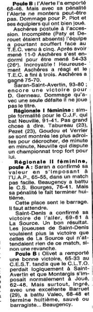 « Saison 1987-1988 : Lors de la Journée du 27 Mars 1988 en Championnat Régionale Masculine 1, Gien bat le Tours EC