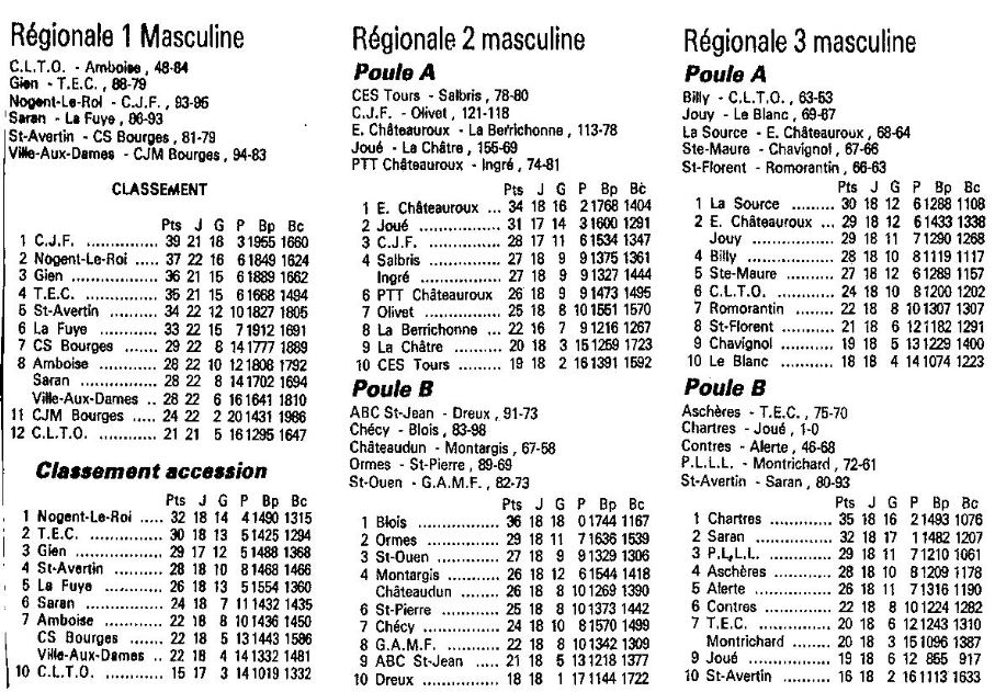 Saison 1987-1988 : Résultats et Classements après la Journée du 27 Mars 1988 des Championnats Régionaux